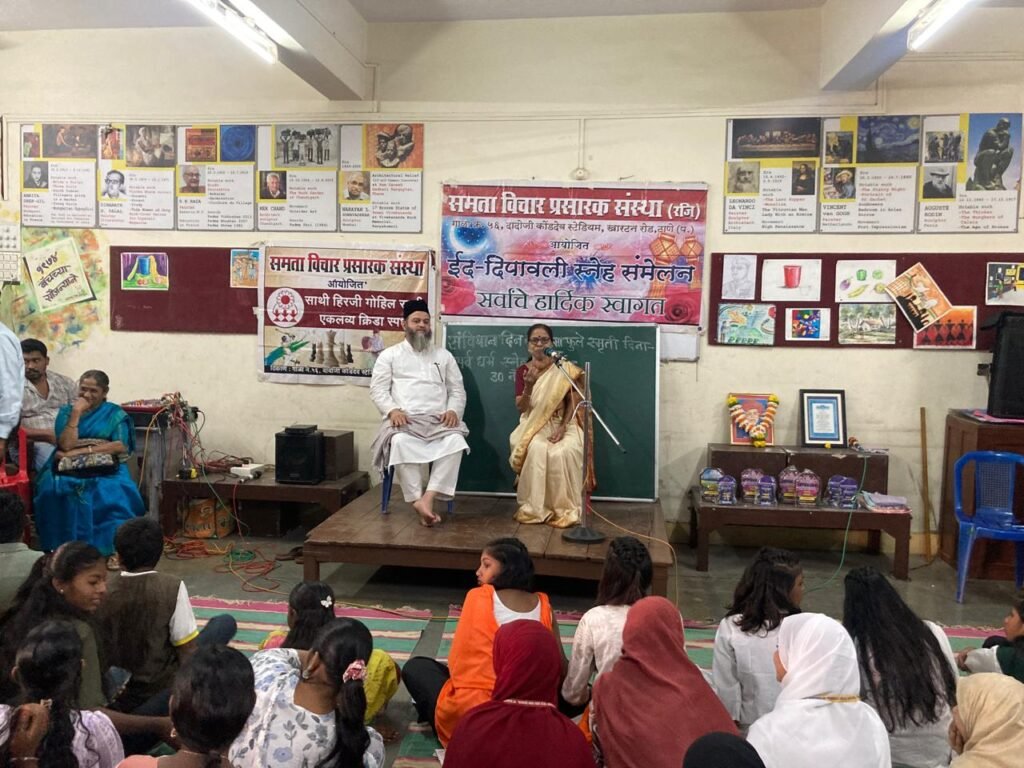 ठाणे : समतेचा, बंधुत्वाचा आणि धर्मनिरपेक्षतेचा अधिकार जनतेला देणाऱ्या संविधानाच्या निर्मितीला ७५ वर्षे पूर्ण झाल्याचे औचित्य साधून व थोर समाज सुधारक महात्मा जोतिबा फुलेंच्या १३५ व्या स्मृतिदिनानिमित्त, समता विचार प्रसारक संस्थेचे १५ वे वार्षिक सर्व धर्म स्नेह संमेलन ठाण्यातील मो. ह. विद्यालयात जल्लोषात पार पडले. राबोडी फ्रेंड सर्कल शाळेतील ९ मुलींनी शिक्षिका नूरजहाँ मॅडम यांच्या मार्गदर्शनाखाली ‘मजहब नहीं सिखाता आपस मे बैर रखना…’ या थीमवर प्रभावी मुशायरा सादर करत उपस्थितांची मन जिंकली. कार्यक्रमाच्या अध्यक्षपदी संस्थेचे उपाध्यक्ष सुनील दिवेकर होते. संस्थेच्या कार्यकर्ता व बुरोंडकर शाळेच्या मुख्याध्यापिका फरहाना शेख यांनी कार्यक्रमाचे खुमासदार सूत्र संचालन केले.