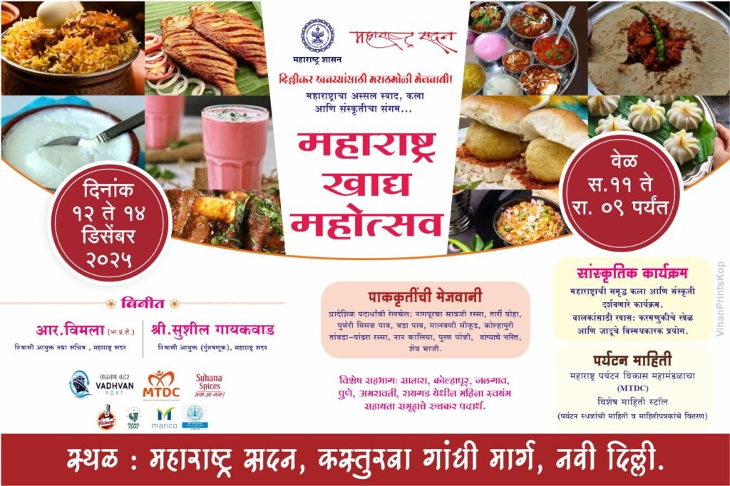दि. 12 ते 14 डिसेंबर या कालावधीत कस्तुरबा गांधी मार्गावरील महाराष्ट्र सदनात हा महोत्सव आयोजित करण्यात आला आहे. उद्घाटन प्रसिद्ध आंतरराष्ट्रीय शेफ विष्णू मनोहर यांच्या उपस्थितीत होणार आहे. महाराष्ट्रातील विविध प्रांतांच्या खाद्यपदार्थांची मेजवानी येथे मिळणार आहे. सावजी मटण रस्सा, मालवणी सीफूड, कोल्हापुरी तांबडा-पांढरा रस्सा, मिसळ पाव, पुरणपोळी, शेव भाजी, नान कालिया, तर्री पोहे अशा अनेक पारंपरिक पदार्थांचा समावेश असेल.